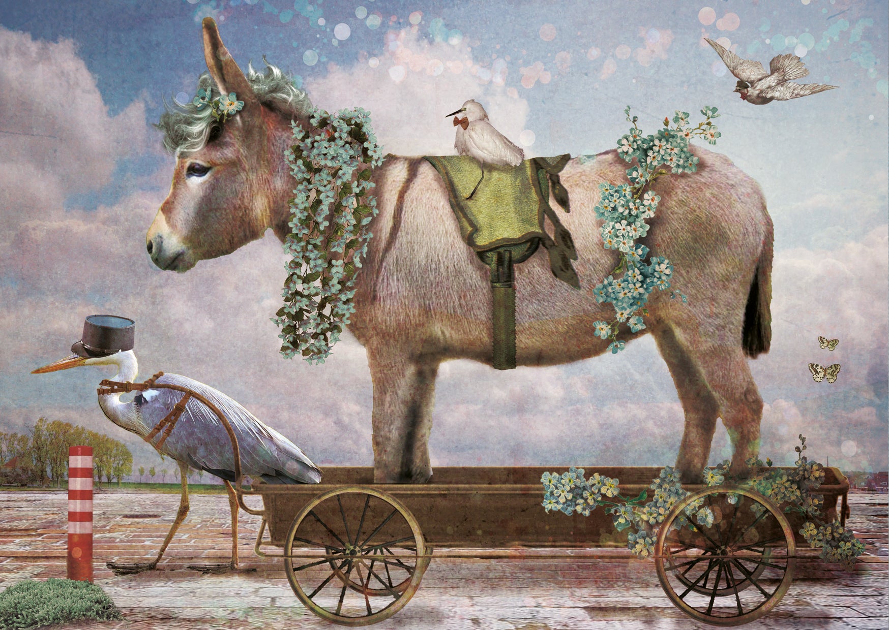 Vrolijke Ansichtkaart van een Ezelwagen in de Parade.