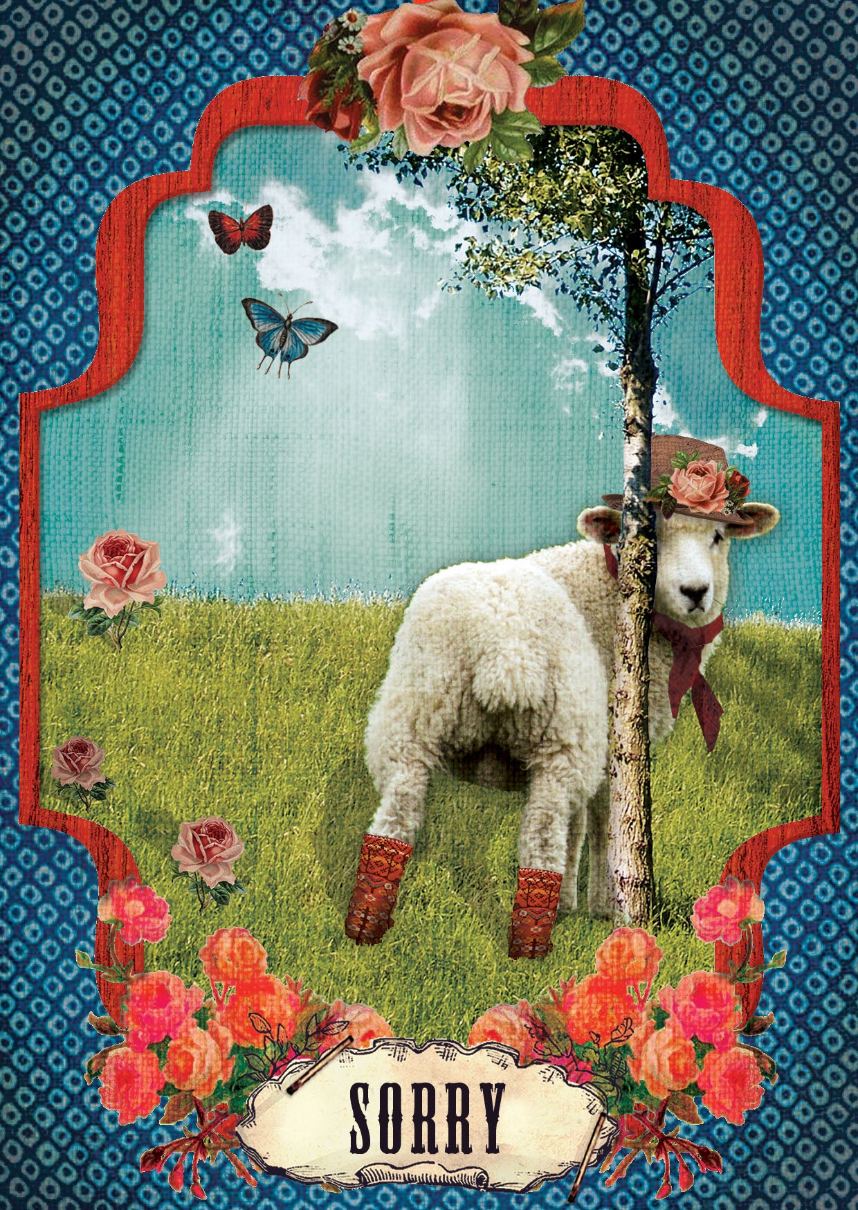 Lieve Ansichtkaart van een Schaapje dat zich schaamt.
