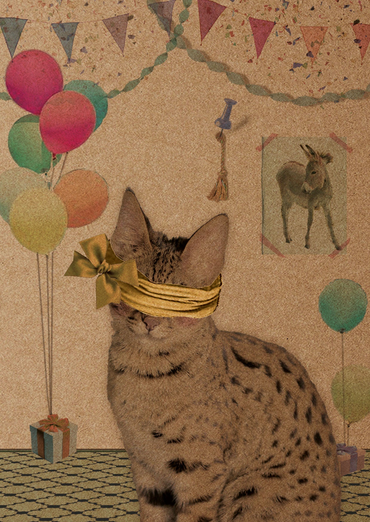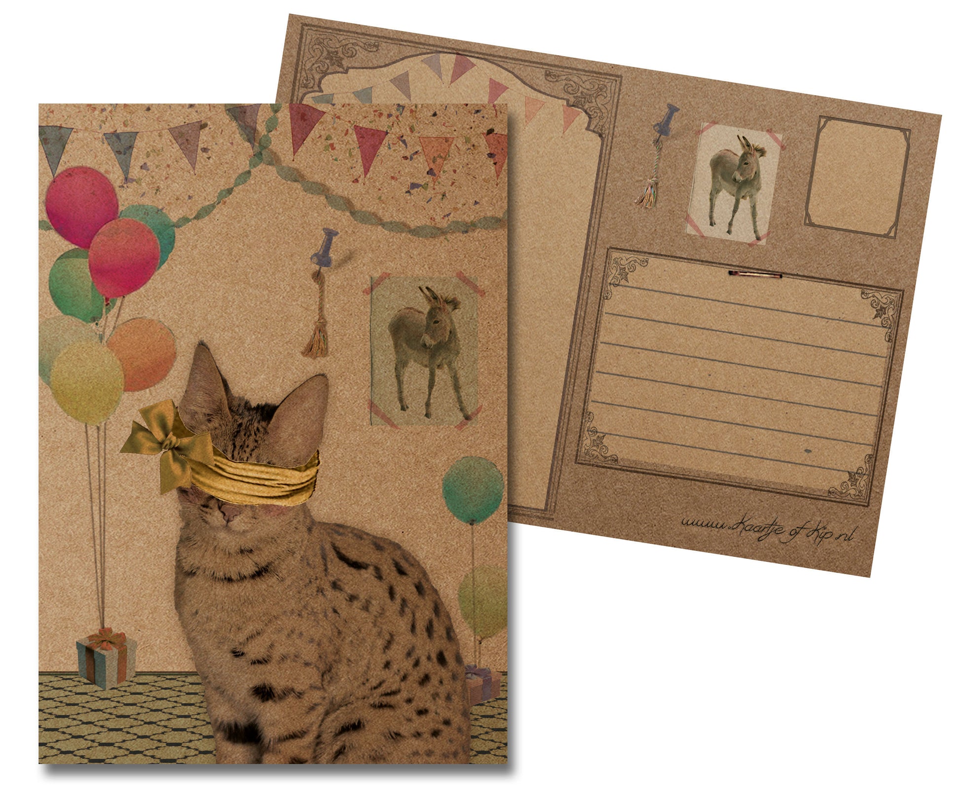 Feestelijke Ansichtkaart van een Poes op een feestje.