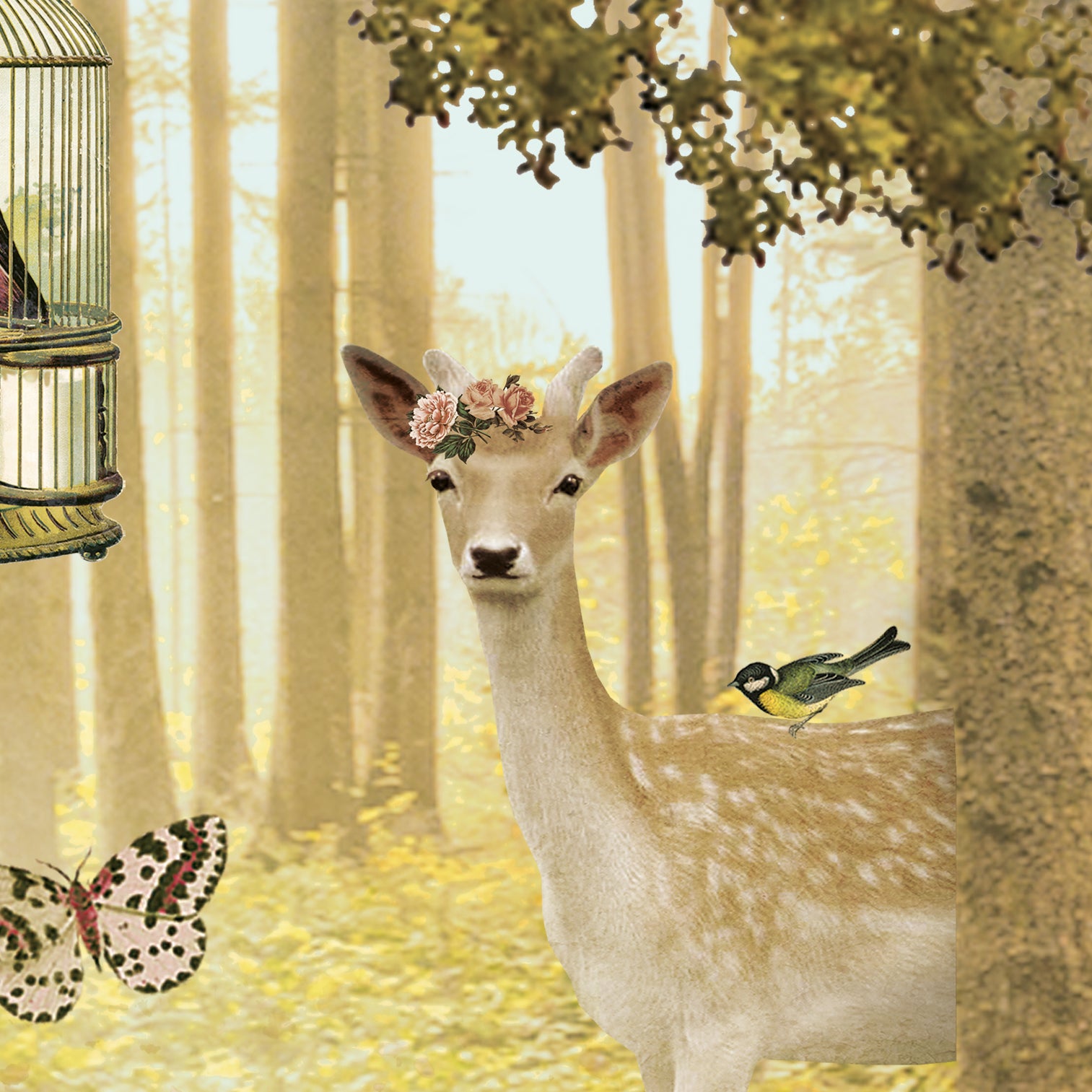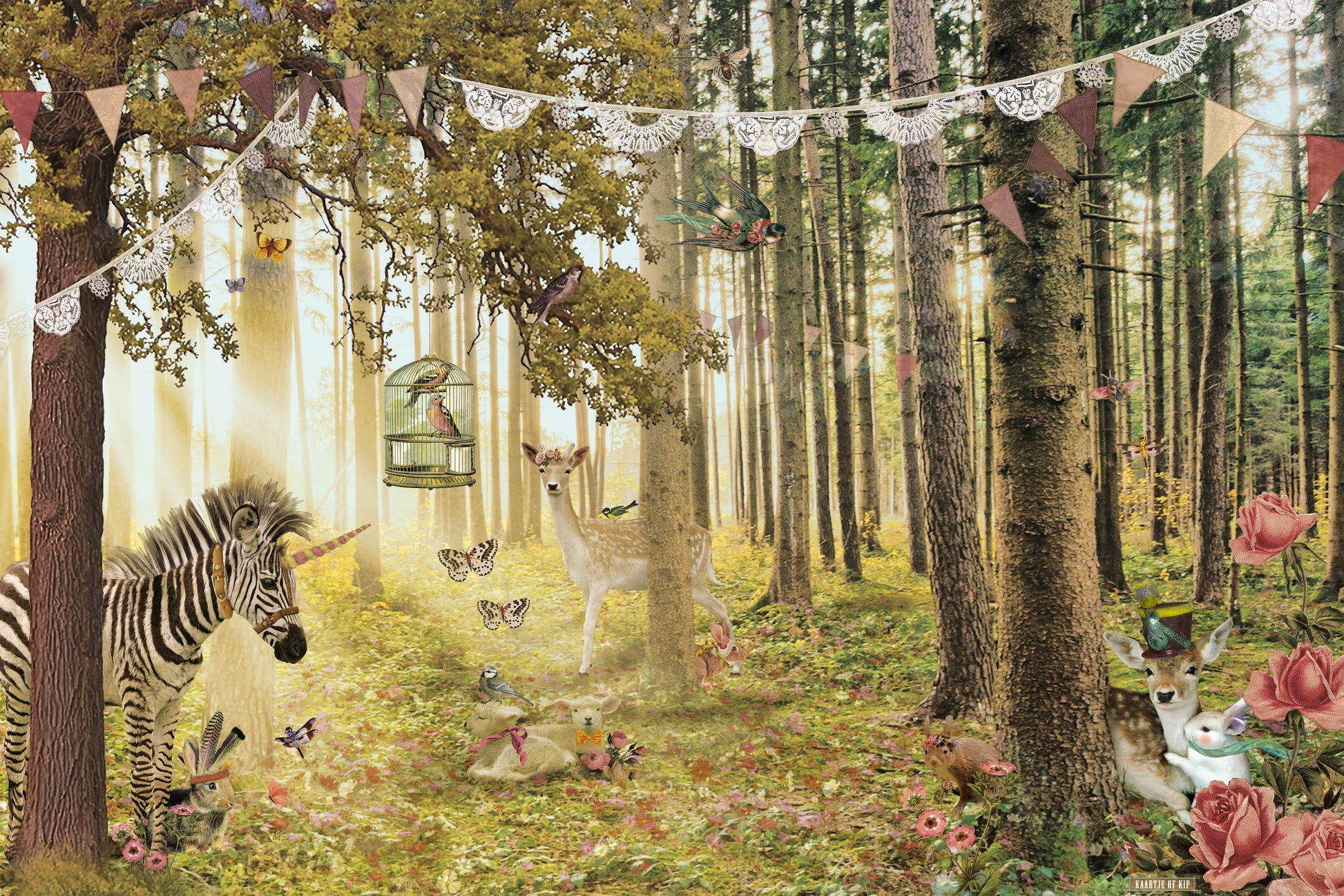 Misschien goed om te weten:De sprookjesachtige plaatjes van Kaartje of Kip komen tot stand door tekeningen en bewerkte foto's met elkaar te combineren. De afbeelding op het behang is speciaal als behang ontworpen, maar wees u bewust dat de "collage techniek" op het formaat van behang, duidelijker zichtbaar is dan op een ansichtkaart. Ook maakt Kaartje of Kip gebruik van filters waarmee de afbeelding een mooie warme uitstraling krijgt. Hierdoor zult u ook op het behang vrijwel geen effen kleuren tegenkomen en is de achtergrond aan de randen soms donkerder van kleur dan in het midden van de muur. Dit alles zorgt ervoor dat het behang van Kaartje of Kip van iedere muur en ruimte écht iets bijzonders maakt!