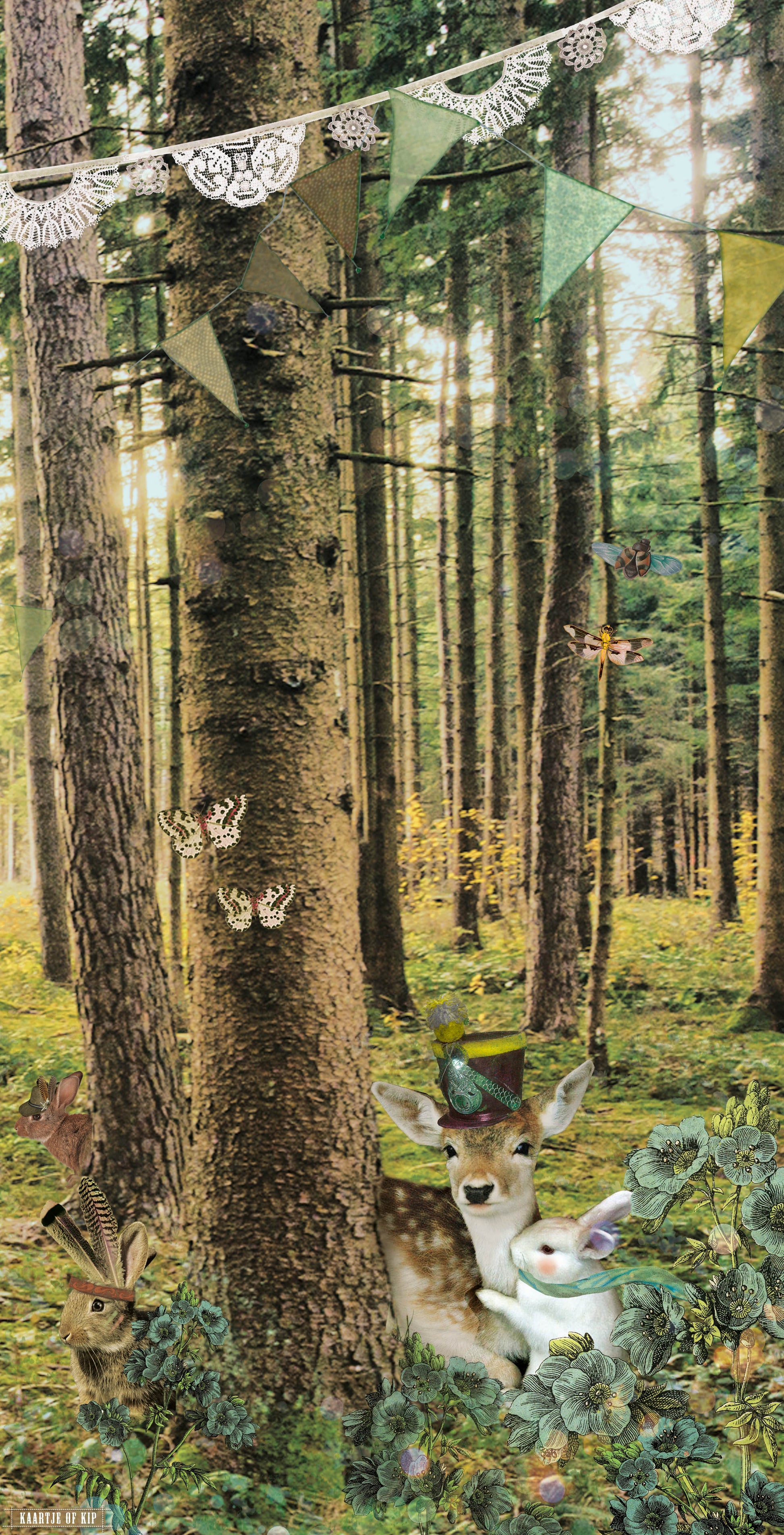 Misschien goed om te weten: De sprookjesachtige plaatjes van Kaartje of Kip komen tot stand door tekeningen en bewerkte foto's met elkaar te combineren. De afbeelding op het behang is speciaal als behang ontworpen, maar wees u bewust dat de "collage techniek" op het formaat van behang, duidelijker zichtbaar is dan op een ansichtkaart. Ook maakt Kaartje of Kip gebruik van filters waarmee de afbeelding een mooie warme uitstraling krijgt. Hierdoor zult u ook op het behang vrijwel geen effen kleuren tegenkomen en is de achtergrond aan de randen soms donkerder van kleur dan in het midden van de muur. Dit alles zorgt ervoor dat het behang van Kaartje of Kip van iedere muur en ruimte écht iets bijzonders maakt!