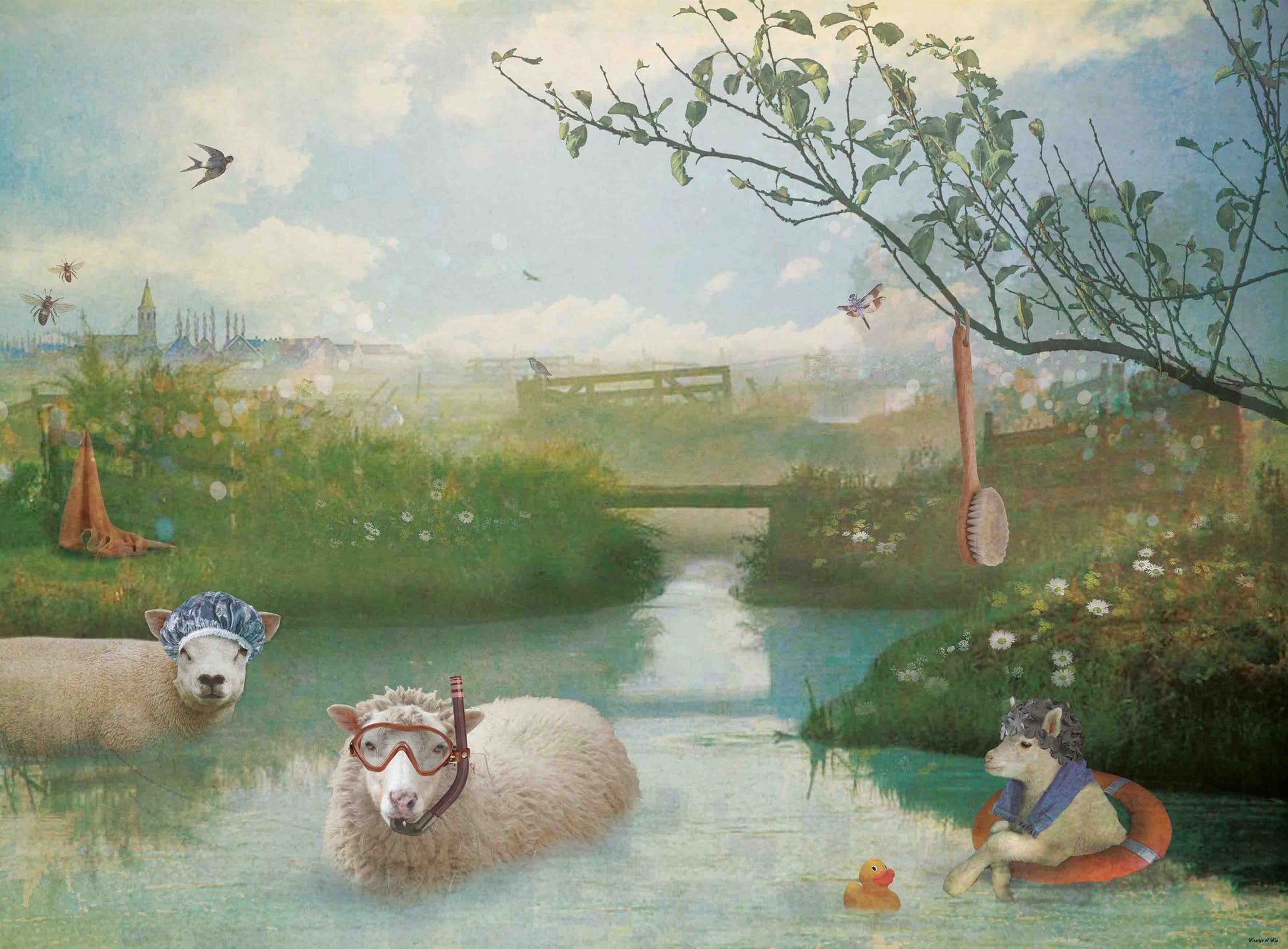 En drie schaapjes zwemmen daar heel ’s ochtends vroeg, lekker in hun blootje.