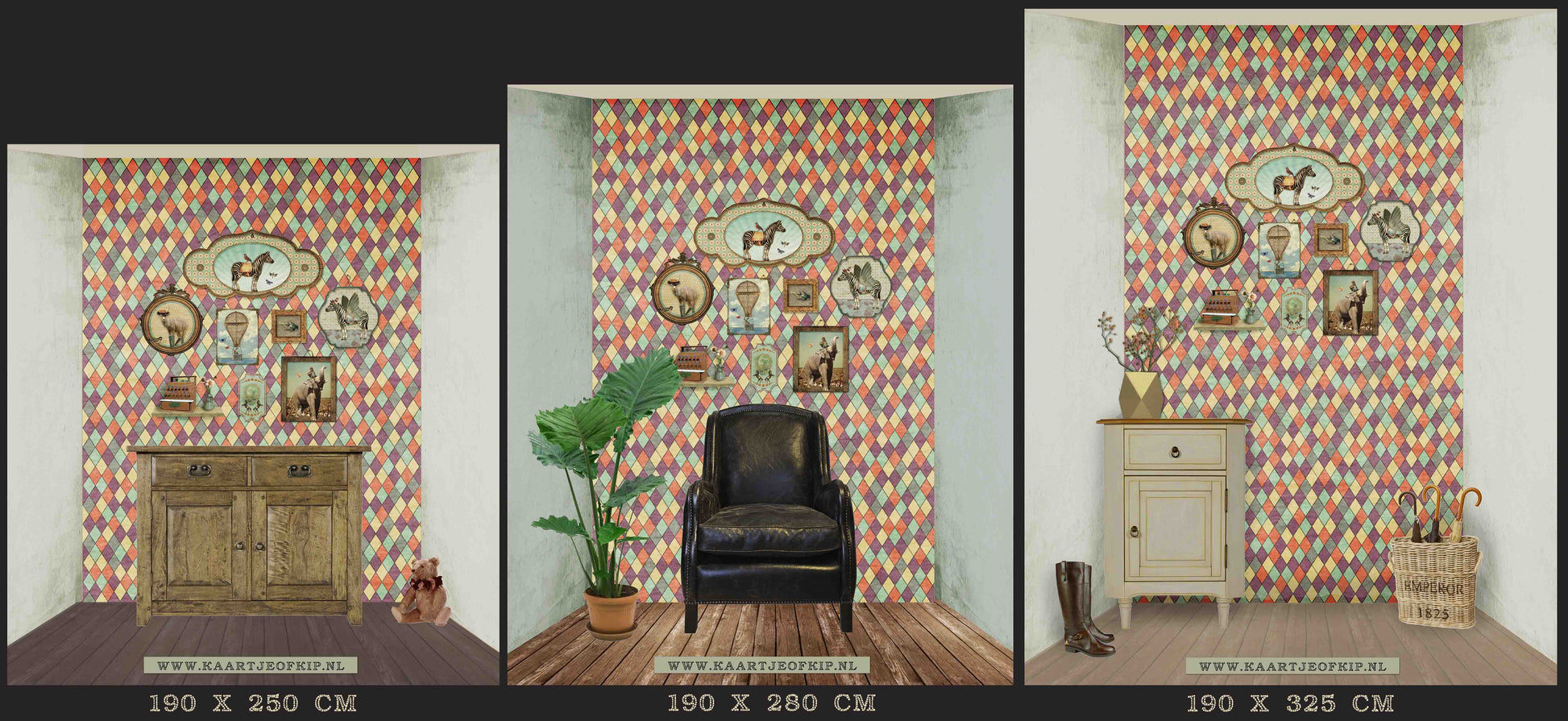 Misschien goed om te weten:De sprookjesachtige plaatjes van Kaartje of Kip komen tot stand door tekeningen en bewerkte foto's met elkaar te combineren. De afbeelding op het behang is speciaal als behang ontworpen, maar wees u bewust dat de "collage techniek" op het formaat van behang, duidelijker zichtbaar is dan op een ansichtkaart. Ook maakt Kaartje of Kip gebruik van filters waarmee de afbeelding een mooie warme uitstraling krijgt. Hierdoor zult u ook op het behang vrijwel geen effen kleuren tegenkomen en is de achtergrond aan de randen soms donkerder van kleur dan in het midden van de muur. Dit alles zorgt ervoor dat het behang van Kaartje of Kip van iedere muur en ruimte écht iets bijzonders maakt!