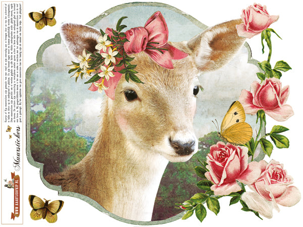- Hertje in kader met rozen (36 x 29,5 cm)