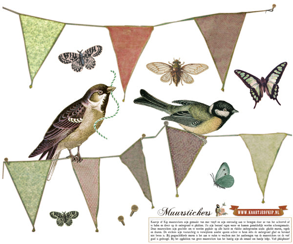 - Vlaggenlijn deel 1 met mus en koolmeesje (30x16,5 cm)