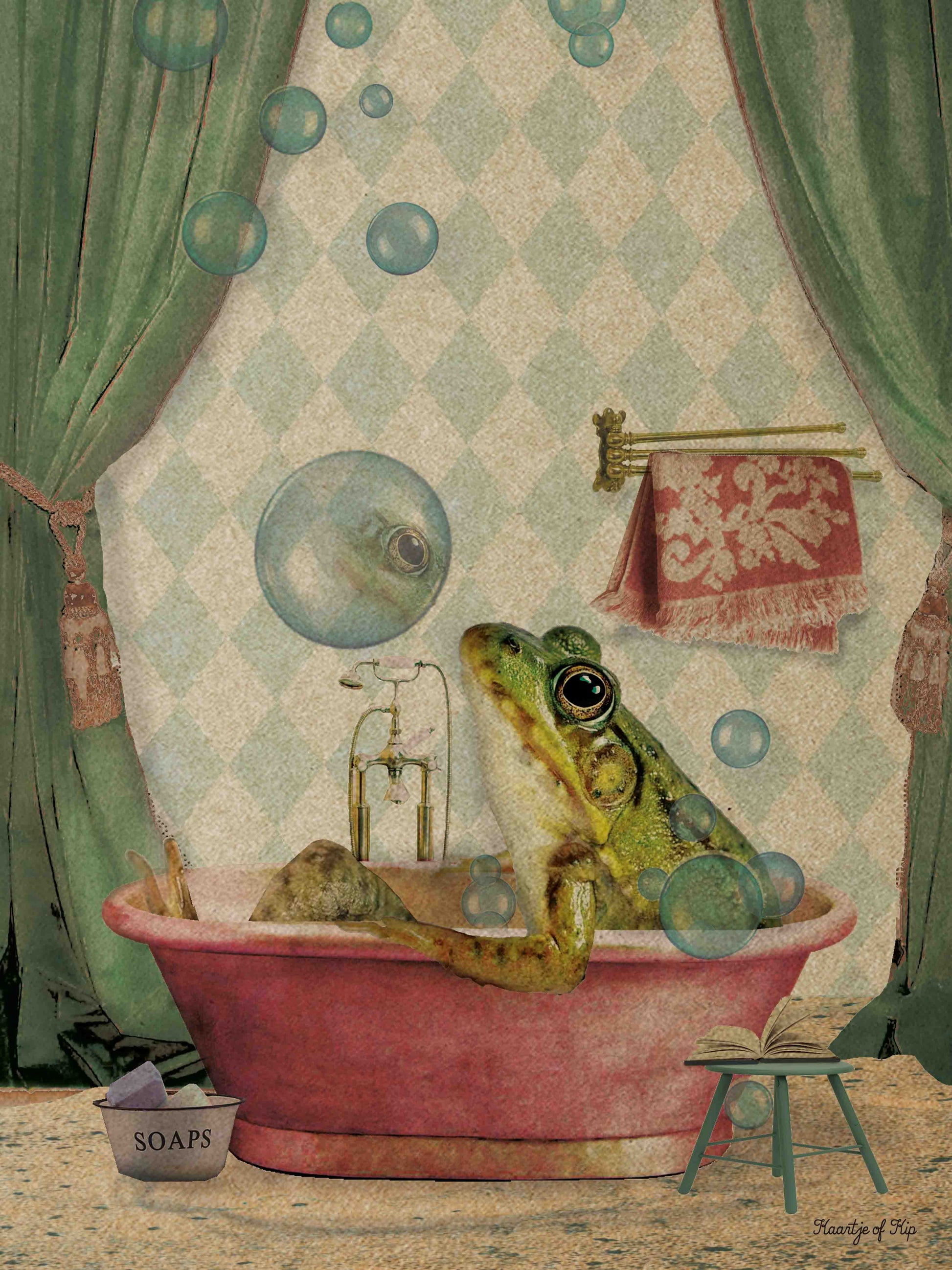 Gezellige poster van een Kikker in bad