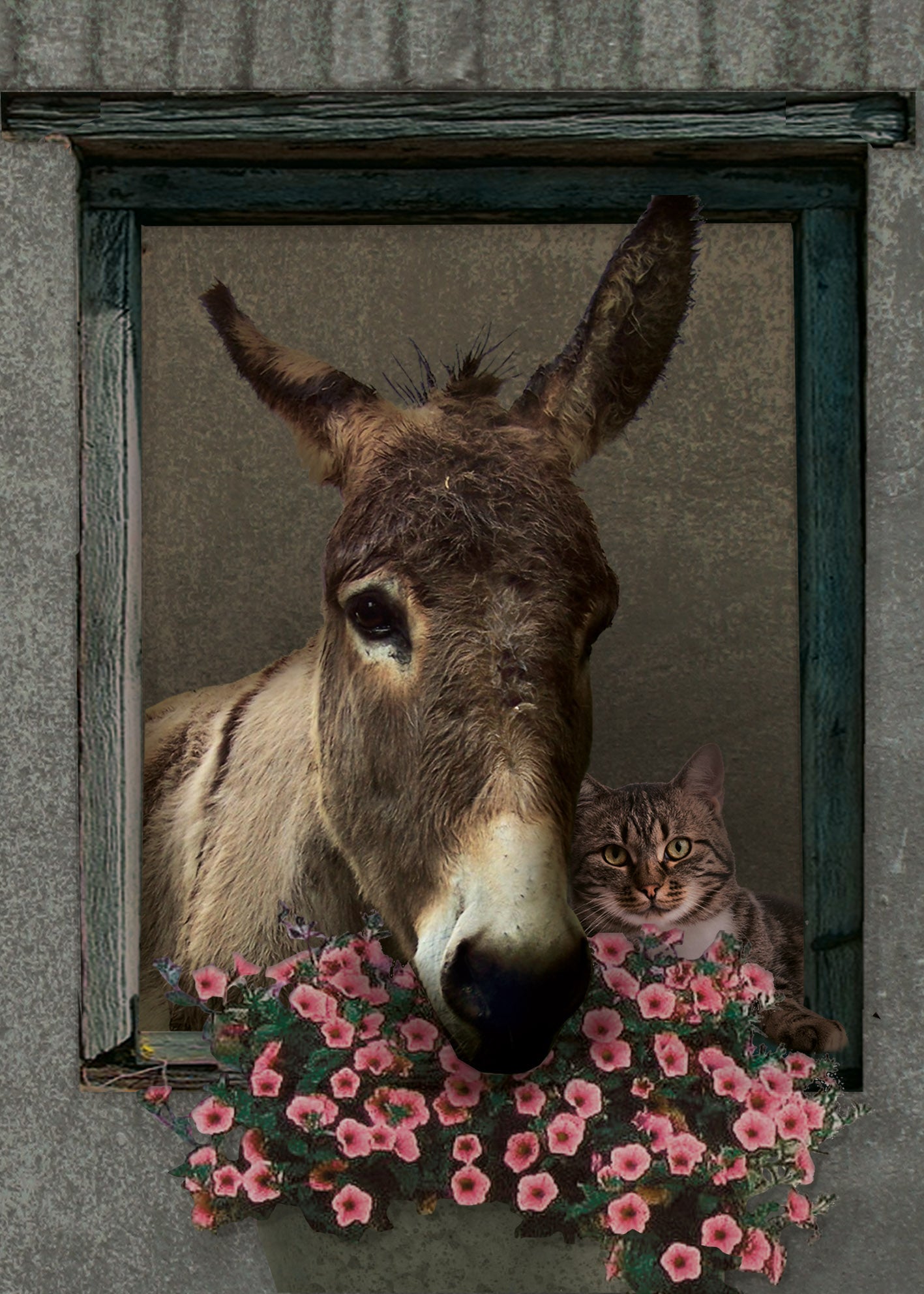 Lieve Poster van een Ezeltje en een Poes.