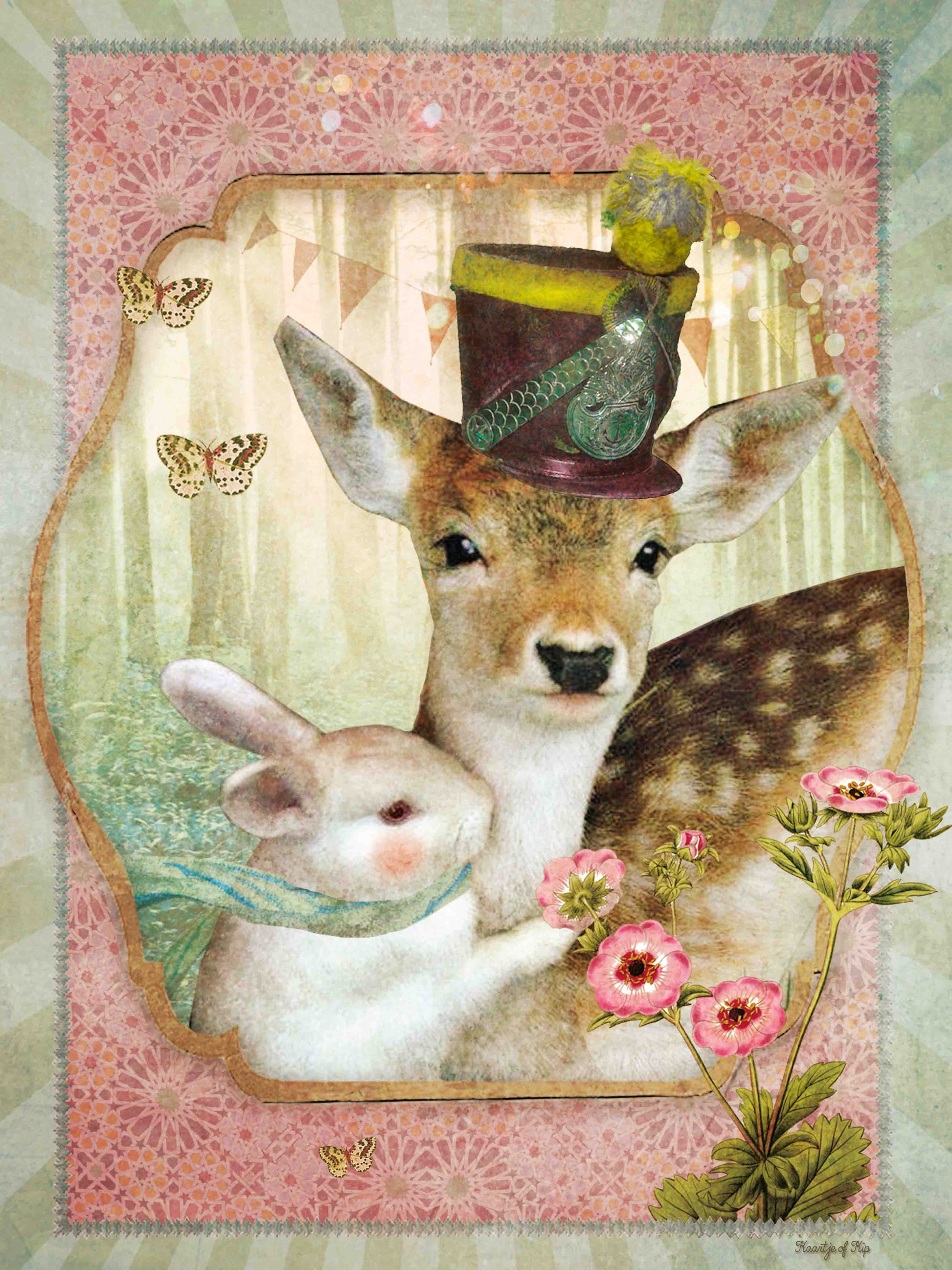 Lieve Poster van een Knuffelend Hertje en Konijntje.