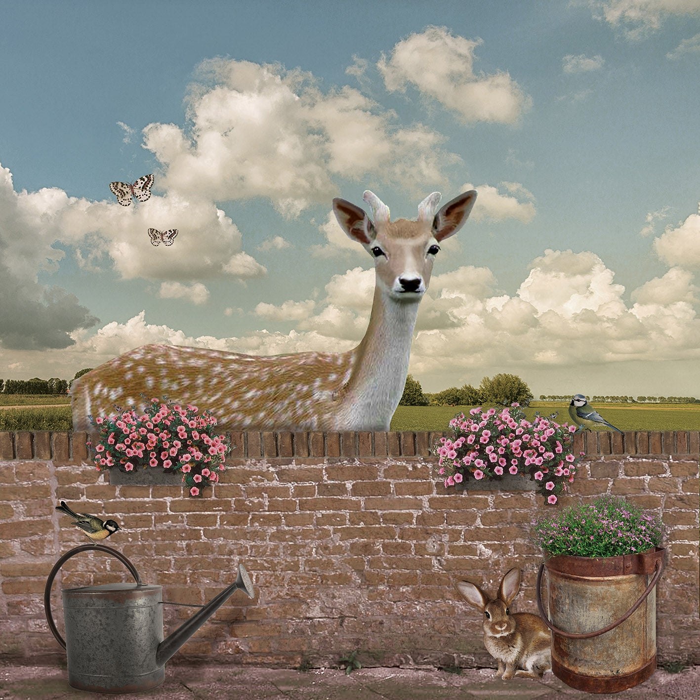 Gezellig uitzicht op een lief Hert op PVC (510 g/m²) brandwerend, waterafstotend en gedrukt met UV inkt.