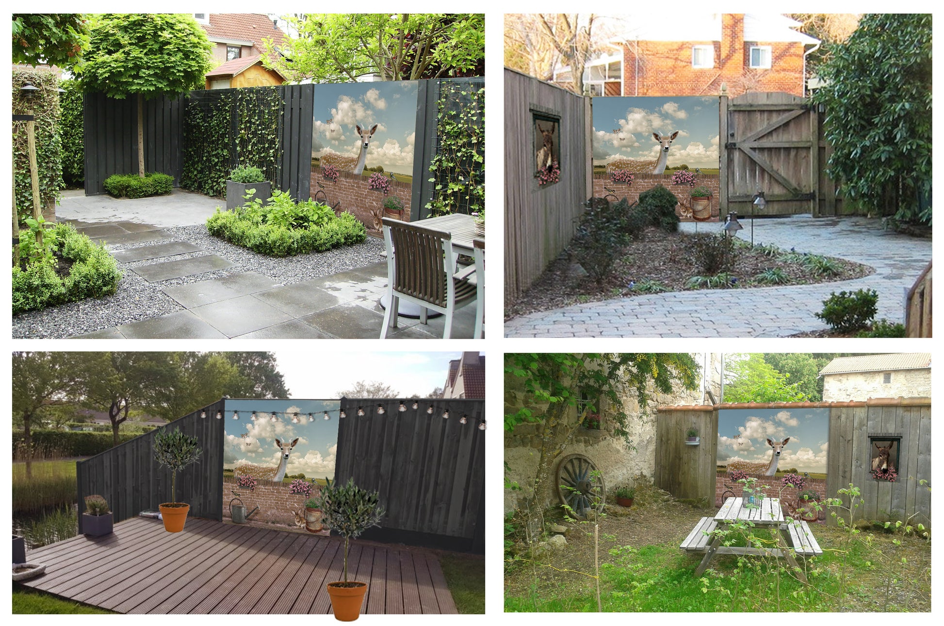 *Tip van Kip: het mooiste resultaat krijg je door planten of een pergola rondom te plaatsen! Zo integreert de afbeelding het mooist met de rest van de tuin.