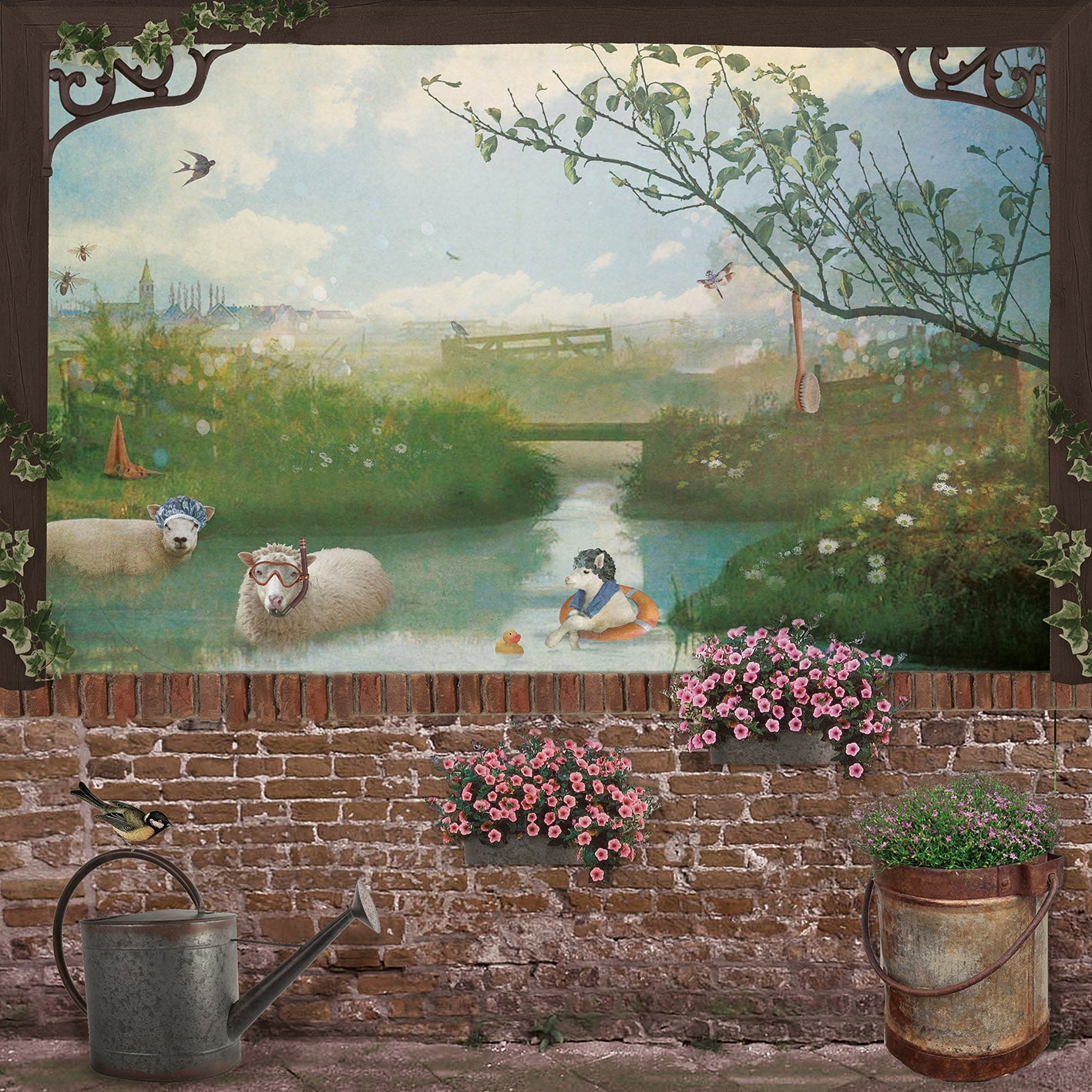 Gezellige uitzicht op zwemmende Schapen op PVC (510 g/m²) brandwerend, waterafstotend en gedrukt met UV inkt.